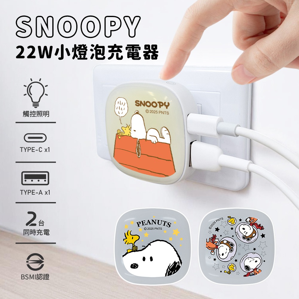 【SNOOPY 史努比】22W PD+QC 小燈泡充電器/快充頭