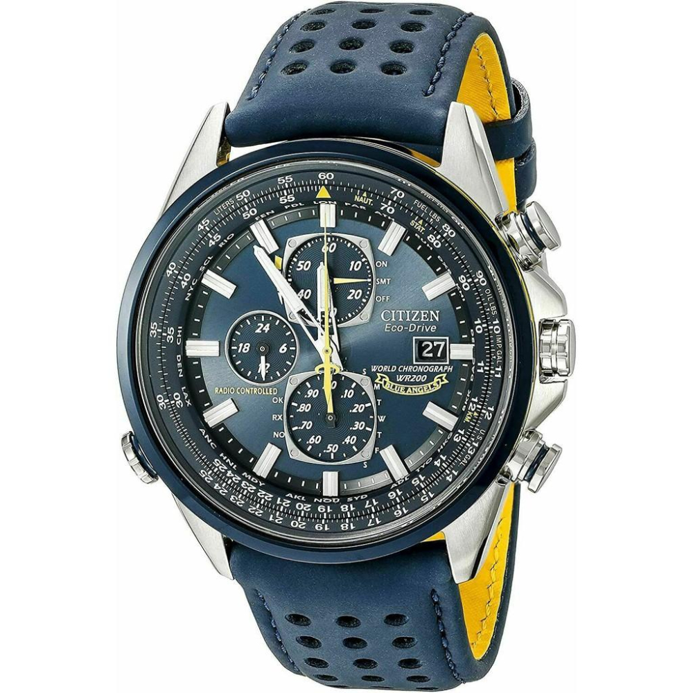 日本星辰CITIZEN Eco-Drive藍天使電波校正大表盤43mm 皮帶男錶AT8020-03L 藍寶石20atm
