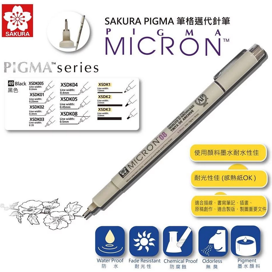 日本 SAKURA 櫻花 PIGMA MICRON 筆格邁代針筆 櫻花代用針筆 (單支販售) 代針筆 黑色