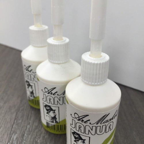 殘餘在畫筆上的留白膠若乾後未能洗淨,可使用老人牌留白膠專用筆洗液予以清洗。