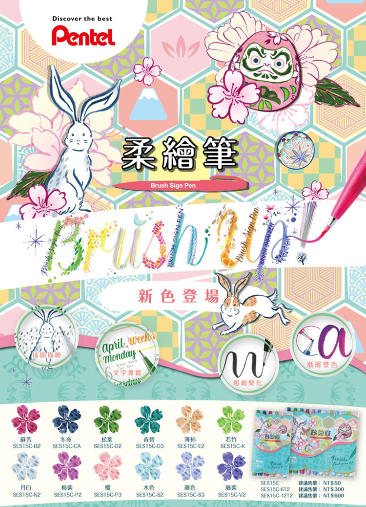 色彩鮮豔、出水滑順,特製柔軟筆尖,適合書寫卡片、繪製作品等。