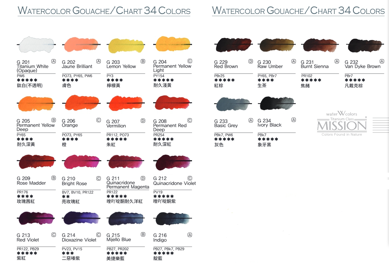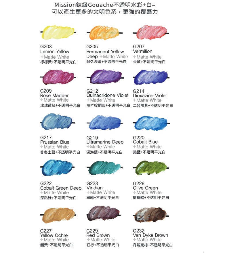 Mission鈦級 Gouache 不透明水彩/水粉〈 Mission Titanium Class GOUACHE for Watercolor 〉