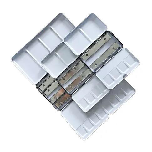 MUNGYO 固體/塊狀水彩颜料專用鐵盒,適用各大廠牌固體水彩, 亦可直接當調色盤使用,中間的空間可放置水彩筆或水筆,攜帶方便。