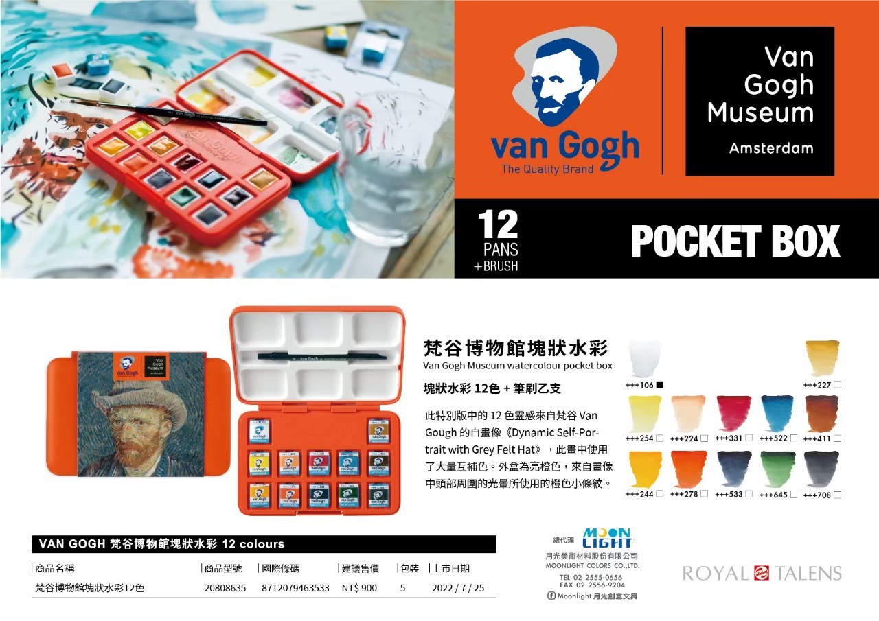 梵谷博物館塊狀水彩 Van Gogh Museum watercolour pocket box 塊狀水彩12色+筆刷乙支