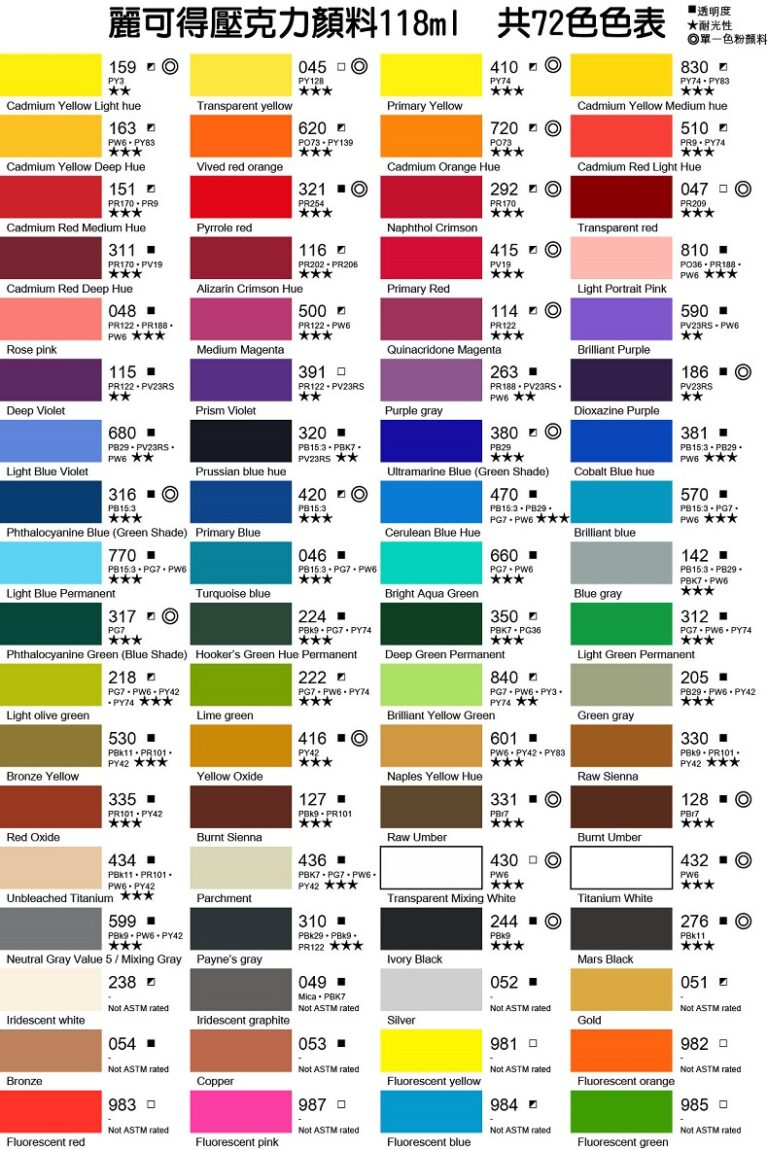 壓克力顏料(丙烯畫顏料)附著和渲染平衡、色彩純淨亮麗、穩定與耐光度兼備