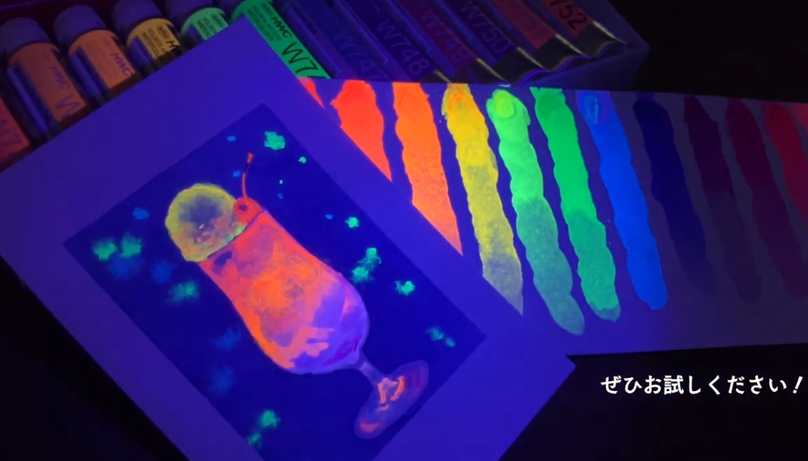 好賓專家透明水彩新增離艷又好玩的螢光色12色·水彩蒙料中家少出現瑩光色,其中螢光藍更是少之又少。高明度、高飽和度的螢光色,進一步拓展了水彩和插畫的表現範圍。