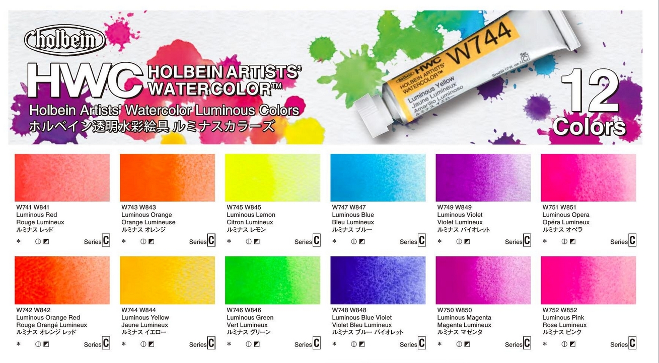 藝城美術~ Holbein Watercolor Luminous 好賓 透明水彩 螢光色 12色 15ML