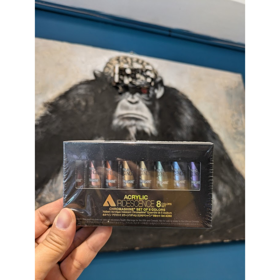 好賓金珠壓克力顏料是以壓克力樹脂為基底,加上「偏光色料」製成。從不同的角度觀看,會顯現出不同的色彩。全系列共16色,其中,CHROMASHINE®系列的8色帶有金屬般的光澤和很高的遮蓋力,顯色效果不容易受到底層色的影響;而CHROMA