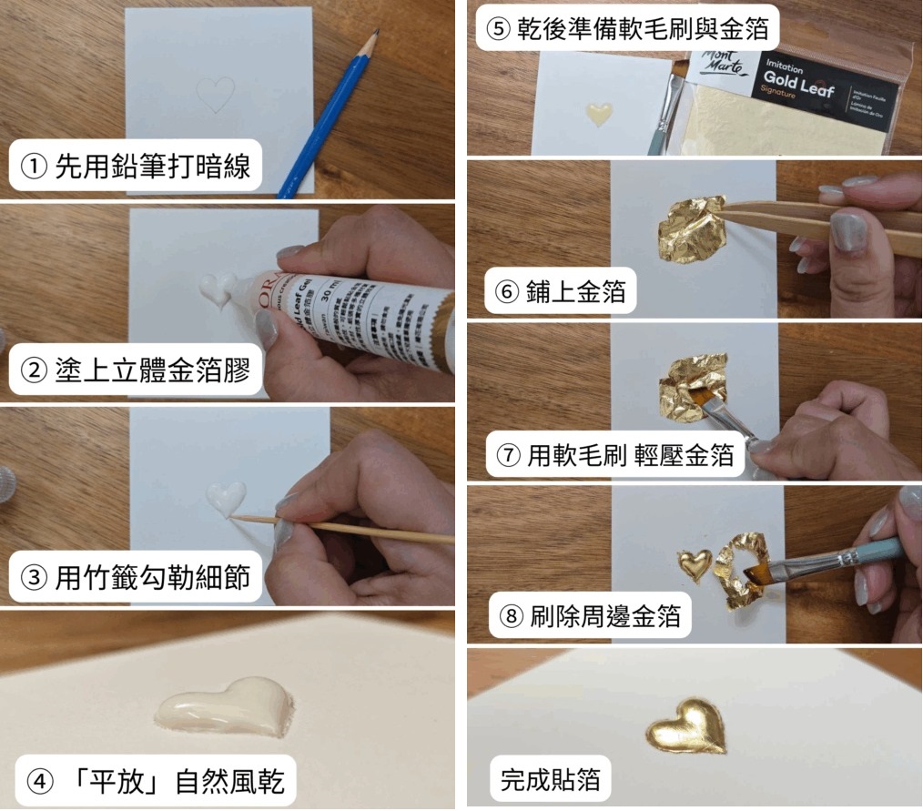 不只是貼金箔,還能呈現厚實立體感與亮眼光澤,瞬間提升作品質感!