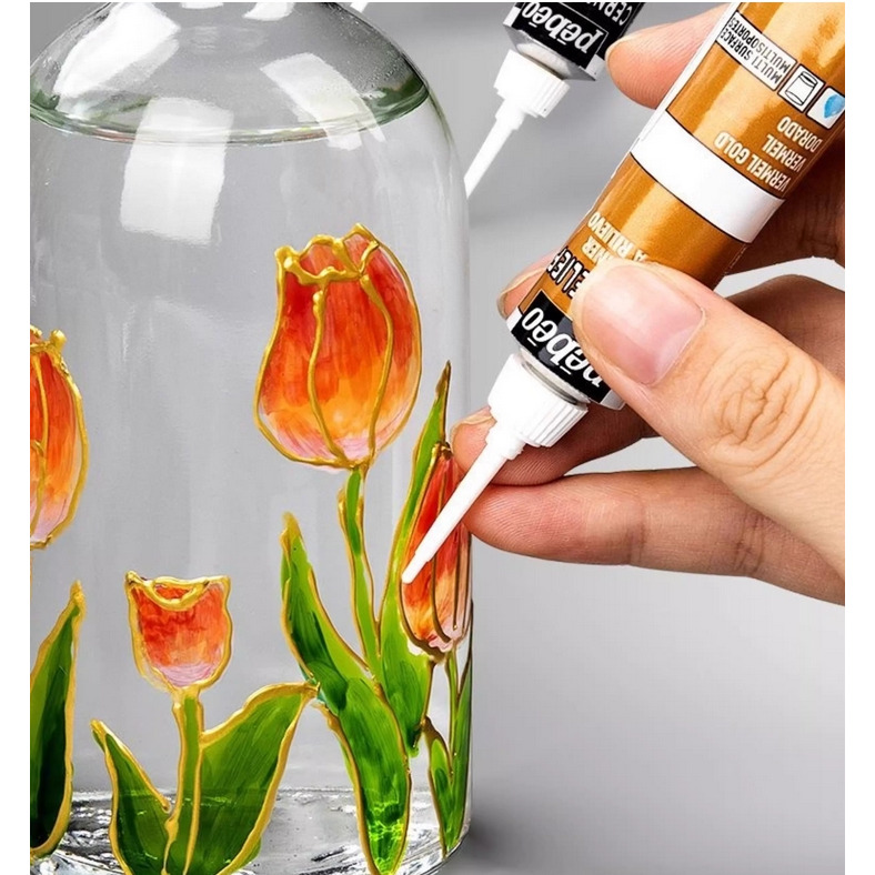 法國 Pebeo 品牌的玻璃彩繪用勾邊線筆,專門用來在玻璃或類似光滑表面繪製線條輪廓。它不是實體建材邊條,而是一種顏料,用來模仿彩繪玻璃上的鑲邊效果。