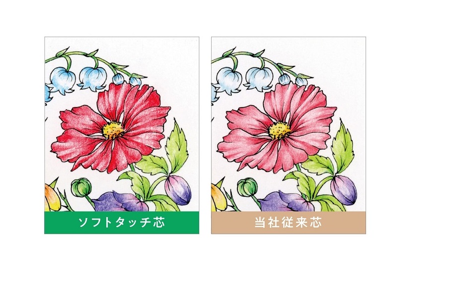 本次採用了全新的「Soft Touch(柔滑輕觸)筆芯」,能較以往產品提升約 30% 的上色濃度(以「紅色」等平均作比較)。