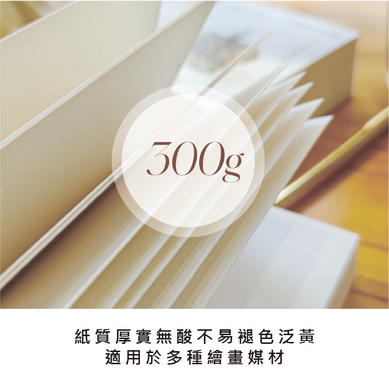 ●紙張厚實,紙質無酸不易褪色泛黃,適用於多種繪畫媒材。