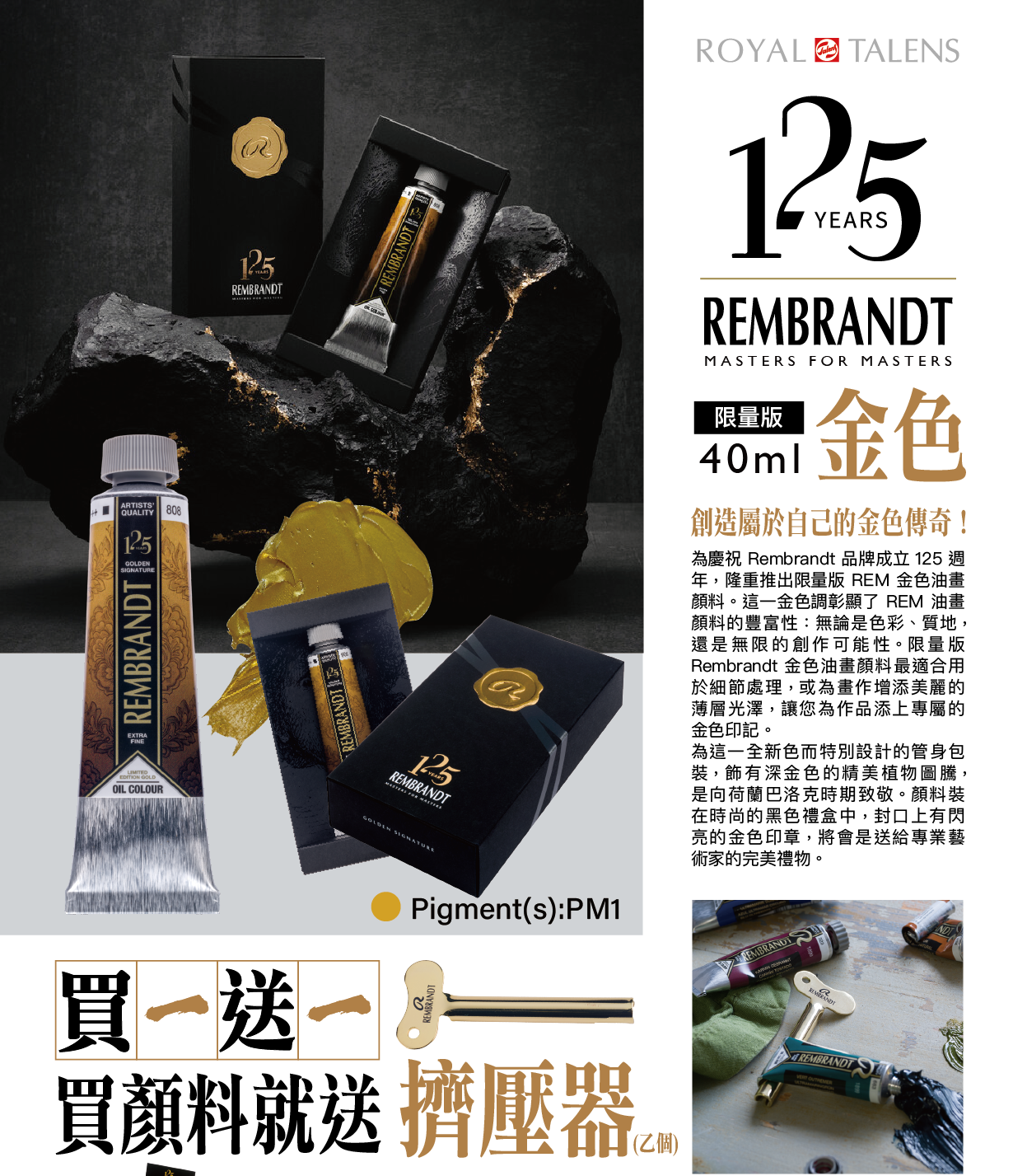 藝城美術~💎林布蘭125周年紀念 林布蘭金色油畫顏料禮盒 買就送 金屬擠壓器 限量~~