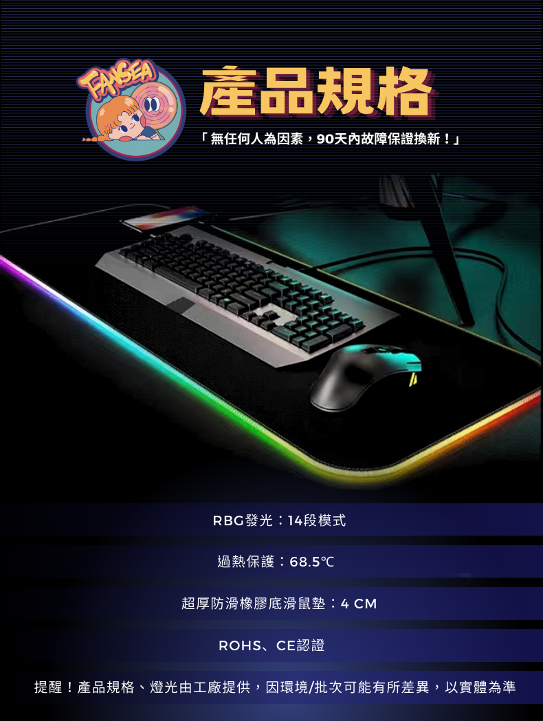 ✅完整包覆式燈帶:整張滑鼠墊光線均勻