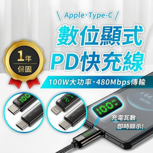 數位顯式PD快充線 保固1年 【178小舖】 適用iPhone 蘋果 TypeC 充電線 傳輸線 數據線 寶利威爾