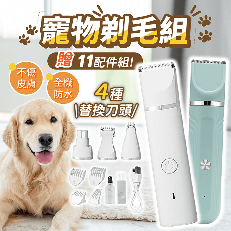 內容物:寵物剃毛機X1、刀頭X4、定位梳X4、潤滑油X1、刷子X1、USBX1