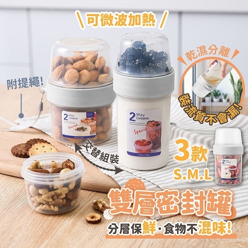 雙層上下分隔保鮮,零混食、不混味更新鮮!適合優格、牛奶麥片,最佳早餐保鮮罐!