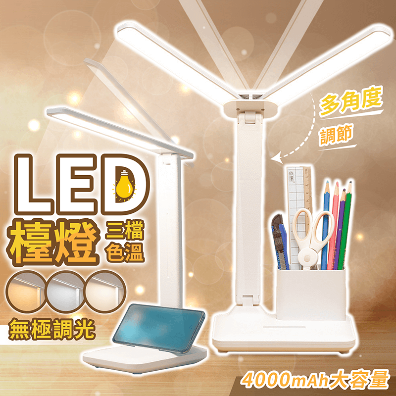 【充電檯燈大款-4000毫安(無極調光三色溫)】