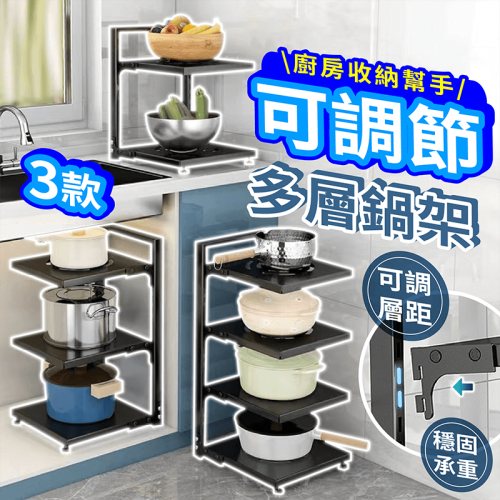 有了這款🧂可調節廚房多層鍋架🧂廚房瞬間井井有條!