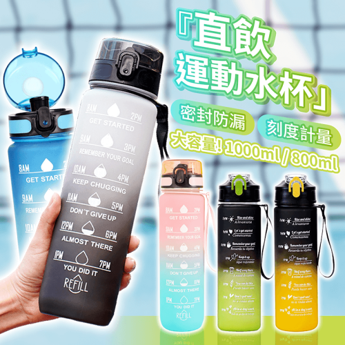 💥1000ml:直飲式瓶蓋飲嘴,不需要停下來打開蓋子,運動中也能一手搞定!