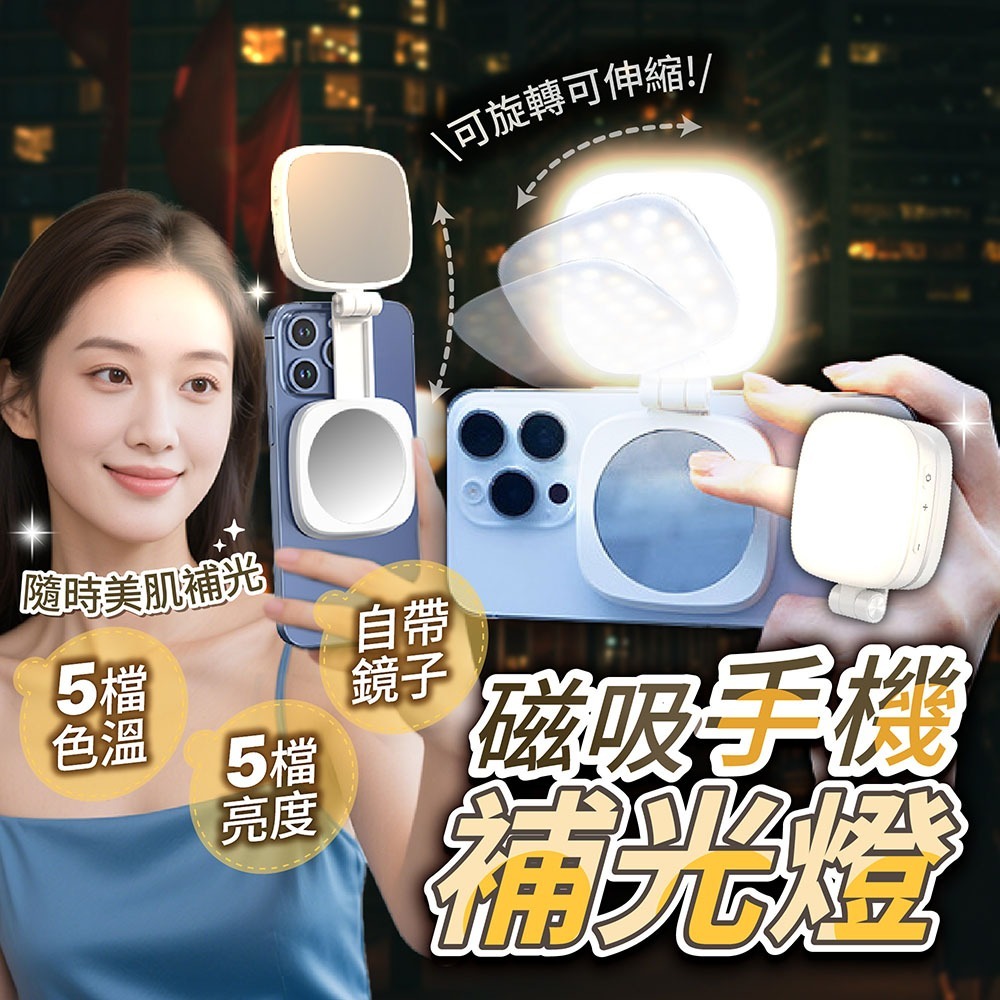 這款【磁吸手機補光燈】專為自拍與直播打造,隨時隨地給你最完美的光線。