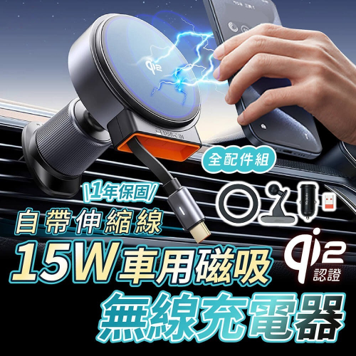 商品名稱:15W Qi2 自帶伸縮線車用磁吸無線充電器
