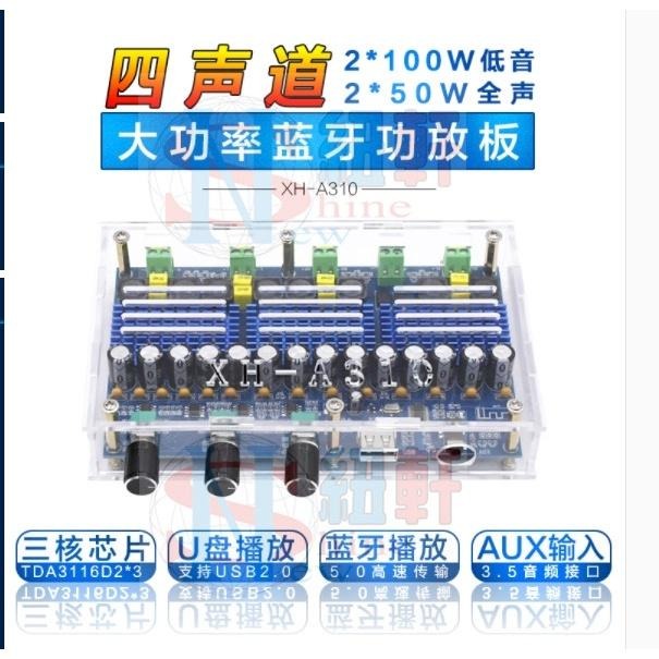 現貨NS-A310帶調音TDA3116D2數位功放板四聲道雙重低音雙重身歷聲可接2*50W全音+2*100W 低音含外殼