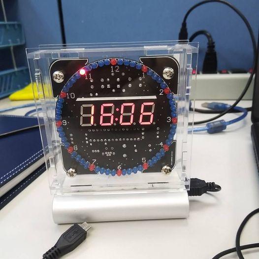 台中現貨 新版電子時鐘套件 C51單片機光控溫度DS1302旋轉LED流水燈DIY製作散件 含電池 含外殼