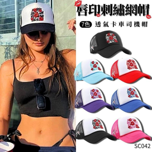 刺繡網帽 棒球帽 透氣帽子 現貨 唇印 速乾 卡車司機帽 帽子網帽 男生帽子 女生帽子 潮流帽子 百搭帽子 SC042