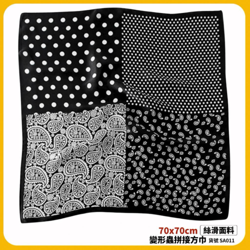 變形蟲 拼接 方巾 領巾 絲巾 頭巾 現貨 實拍 圓點 絲質 掛飾 配件 黑白 質感 春夏 SA011