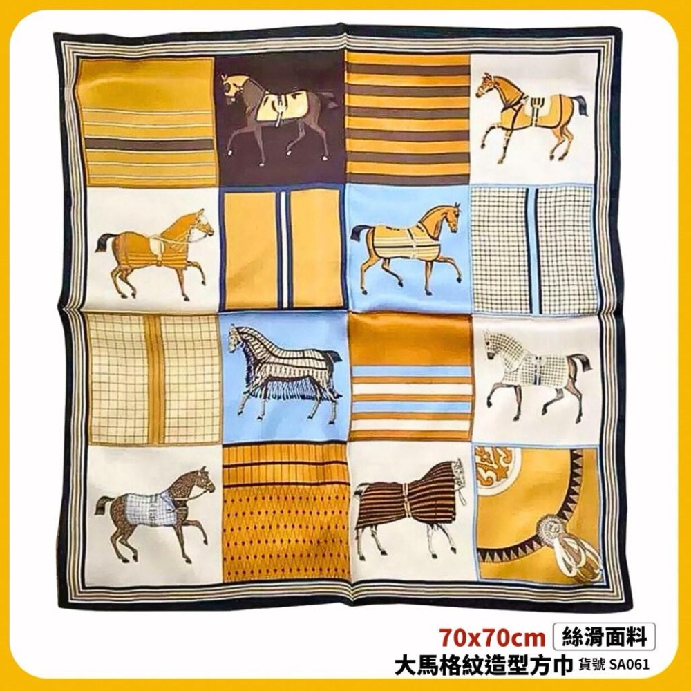 領巾 方巾 頭巾 大馬 格紋 現貨 簡約 質感 貴婦 頭巾 高級 駿馬 髮帶 包巾 脖圍 小方巾 時尚 SA061