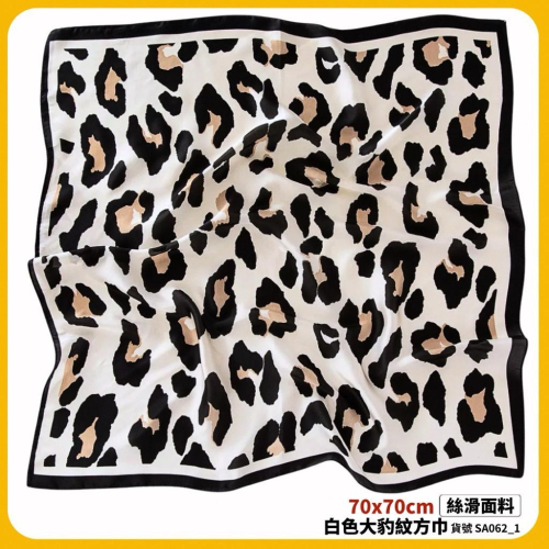 大豹紋 方巾 絲巾 領巾 頭巾 現貨 白色 簡約 質感 貴婦 髮帶 包巾 脖圍 飾品 小方巾 時尚 SA062_1