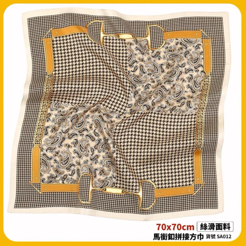 馬銜釦 方巾 絲巾 領巾 頭巾 現貨 變形蟲 拼接 包巾 氣質 大地色 韓系 質感 配飾 春夏 SA012
