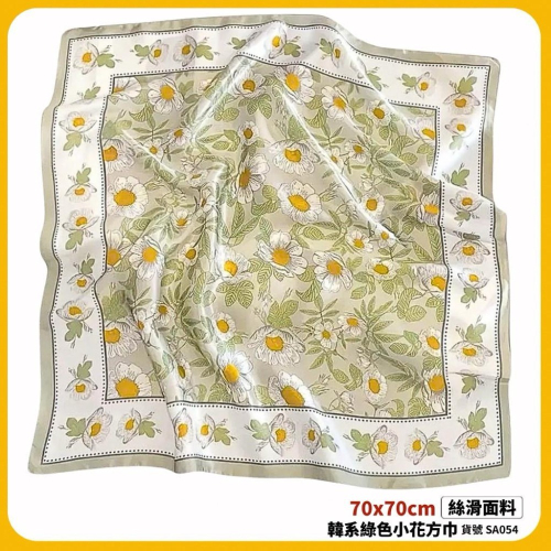 綠色 小花 方巾 絲巾 現貨 韓系 花朵 頭巾 質感 簡約 質感 領巾 髮帶 包巾 脖圍 小方巾 腰飾 SA054