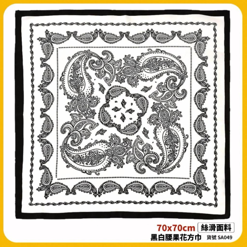 腰果花 方巾 絲巾 頭巾 現貨 黑白 拼色 拼接 簡約 質感 領巾 髮帶 復古 夏天 脖圍 飾品 配件 SA049