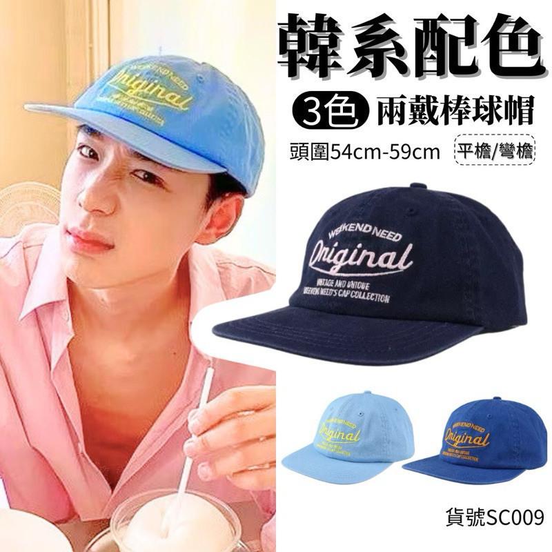 棒球帽 帽子 情侶帽子 現貨 多巴胺 老帽 平檐 彎檐 韓國帽子 韓國同款 刺繡帽子 藍色帽子 SC009