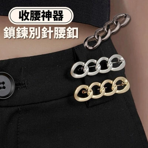 現貨 3色 鎖鏈別針腰釦 收腰神器 可拆 免釘 免縫 調節釦 收腰鈕扣 扣子 牛仔褲 改腰 男 女