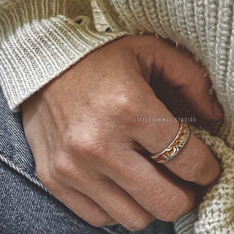 現貨 實拍 金箔刻劃 開口戒指 銀戒 復古 仿舊 S925