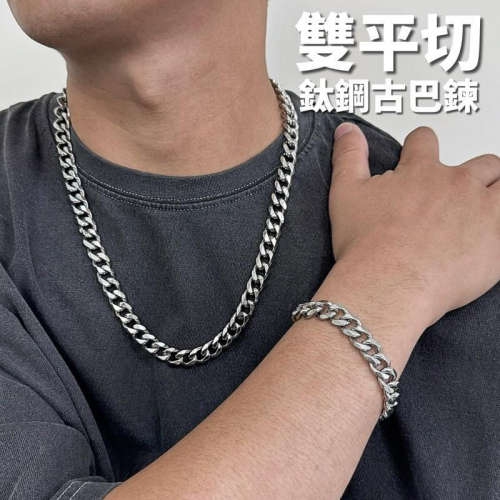 現貨 實拍 雙平切 鈦鋼 古巴鍊 項鍊 手鍊 不怕水 不褪色 男 粗獷 粗鍊 經典