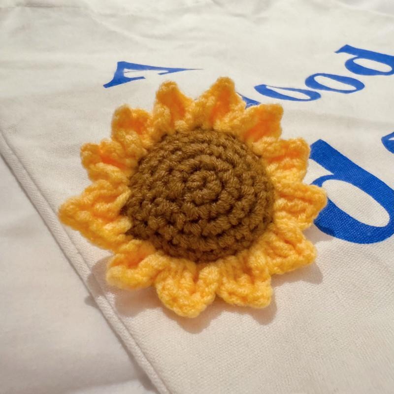 勾針 手作 背包 宋旻浩 手工 裝飾 可愛 正能量 療癒 面向陽光 顏色:黃/咖 材質:毛線 尺寸(± 1cm): 直徑7公分 📦📦📦購買前請詳閱賣場介紹