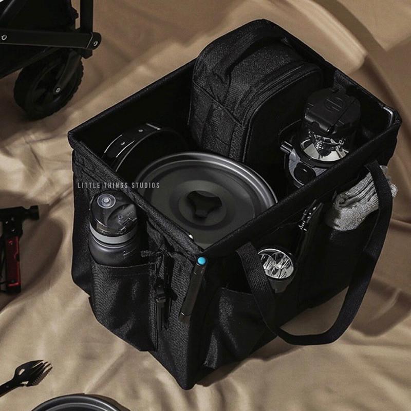 黑化 防潮 野營 野炊 手提 儲物 多掛點 帆布 軍事 尼龍 戶外 可折疊 四邊外側共有六個置物袋 內有金屬支架支撐 顏色:黑 材質:尼龍、金屬支架 尺寸(± 1-3cm): 高32cm 寬25cm 長35cm 提把長30cm 折疊後尺寸35*25*8 📦📦📦購買前請詳閱賣場介紹