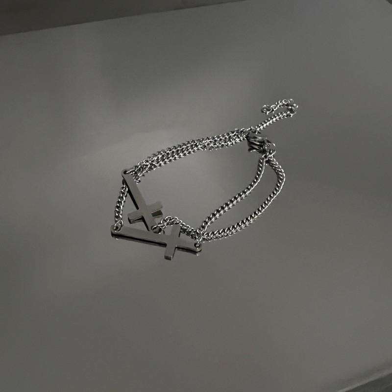 現貨 實拍 雙十字 鈦鋼手鍊 十字架 情侶 銀色 手鏈 SW063