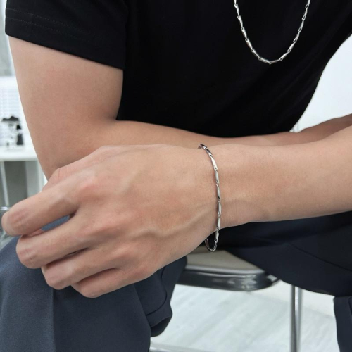 現貨 實拍 極細刀片感 手鍊 鈦鋼 男 手鏈 銀 SW040