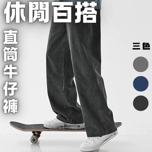現貨 休閒百搭 牛仔褲 牛仔長褲 鬆緊腰 男生長褲 男生褲子 直筒褲 藍色 黑色 灰色
