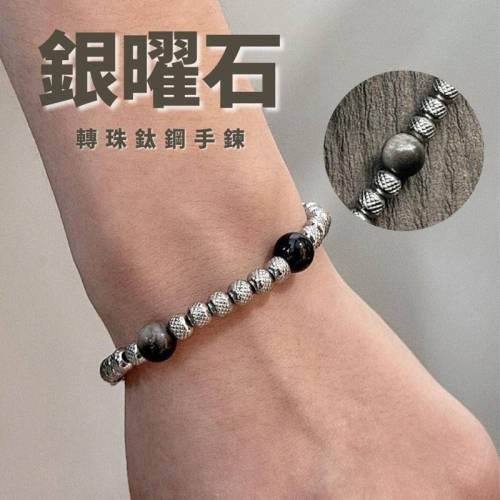 現貨 實拍影片 銀曜石 轉珠 天然石 手鏈 鈦鋼 男 晶石 手鍊 花紋珠 手串 手飾 SW035