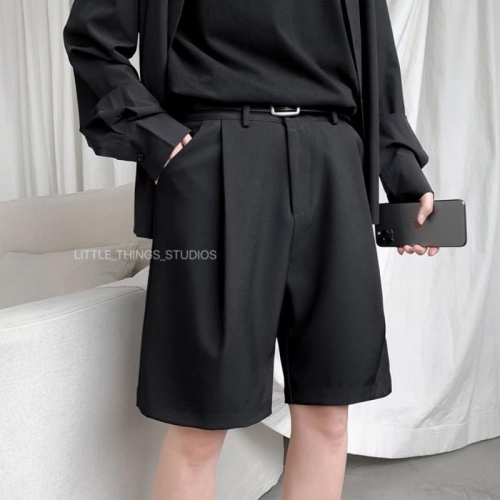 現貨 打褶西裝短褲 西裝褲 西裝短褲 五分褲 短褲 素面 百搭 黑色 男短褲