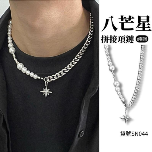 現貨 八芒星拼接項鍊 古巴項鍊 鈦鋼項鍊 珍珠項鍊 男生項鍊 醫療鋼項鍊 潮流 百搭 平價飾品 不鏽鋼 SN044