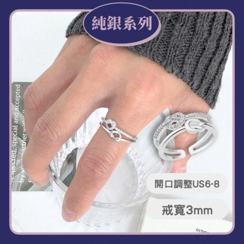 現貨實拍 雙結小鑽戒指 純銀戒指 開口戒指 愛心 水鑽 銀戒
