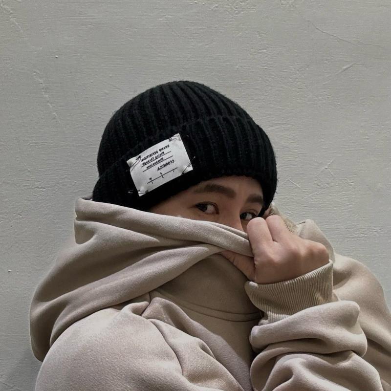 現貨 實拍 隨性布標 毛帽 保暖 針織帽 黑色 護耳帽 防寒