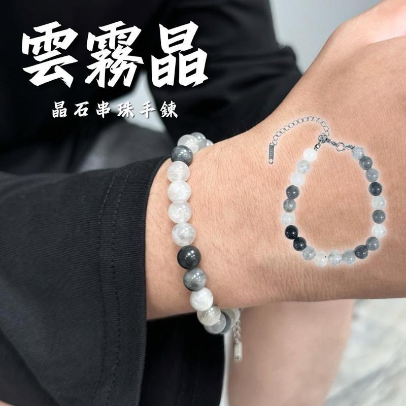 現貨 實拍 雲霧晶 串珠 手鍊 礦石 水晶 天然石 能量 手串 男 女 SW048